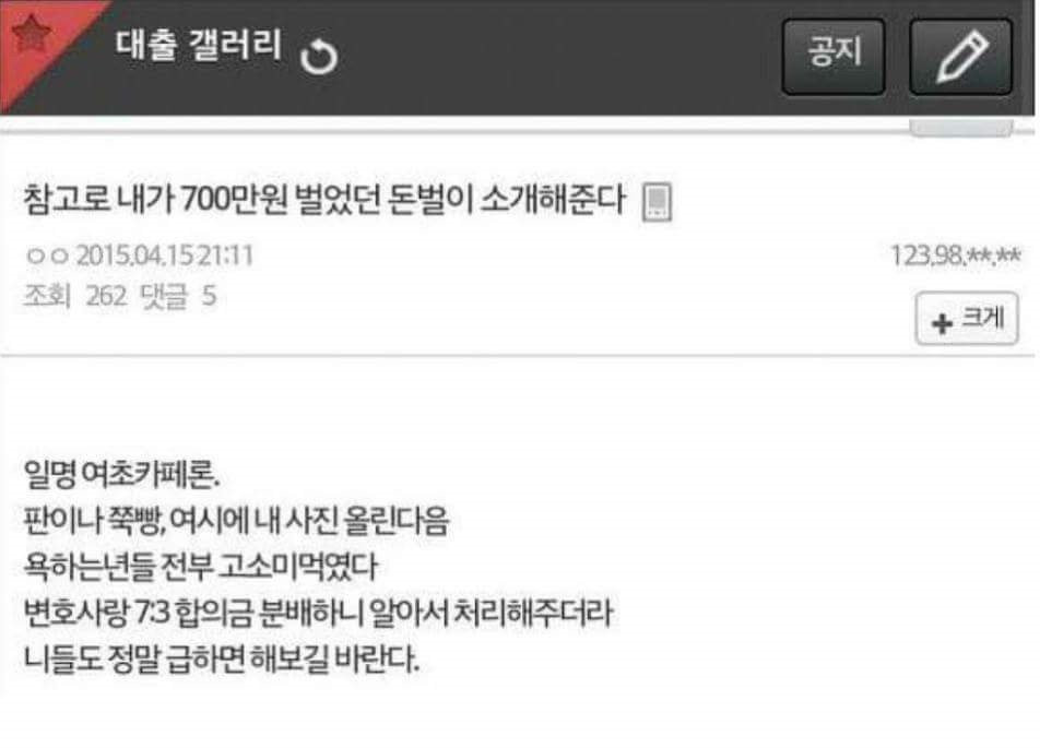 대출갤러리 700만원 버는 썰 우라칸 0 1010 0 06.09 04:00 link URL 복사: https://humorpick.com/bbs/board.php?bo_table=ssul&wr_id=195 0