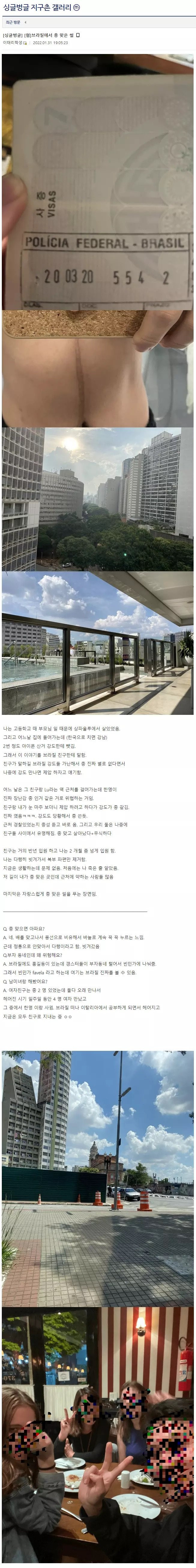 브라질에서 총 맞은 썰 푸는 DC인 라카라카 1 1215 0 07.18 16:00 link URL 복사: https://humorpick.com/bbs/board.php?bo_table=ssul&wr_id=432 0