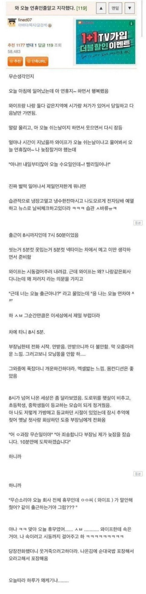 와이프에게 속은 썰 메이플 0 1750 0 05.18 20:00 link URL 복사: https://www.humorpick.com/bbs/board.php?bo_table=ssul&wr_id=67 0