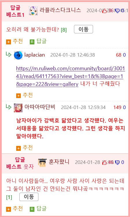 여우랑 친구되는 만화.manhwa 포트리쯔 0 1195 0 05.05 08:00 link URL 복사: https://humorpick.com/bbs/board.php?bo_table=toon&wr_id=4440 https://m.ruliweb.com/community/board/300143/read/64117563?view_best=1&%3Bpage=1&page=222&view=gallery 여기서 이어지는 이야기 단풍은 일본어로 카에데 으아악... 나만볼 순 없지 0