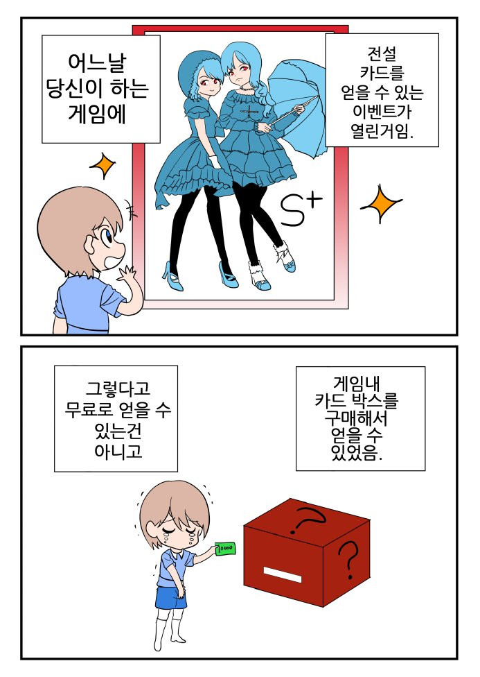 확률형 아이템 도박으로 규제 납득 vs 소비자 자유 만화 메이플 0 1175 0 05.12 12:00 link URL 복사: https://humorpick.com/bbs/board.php?bo_table=toon&wr_id=4449 여러분들은 어떻게 생각 하시나요? /// 유튜브 포더모니TV도 잘부탁드립니다~ 0