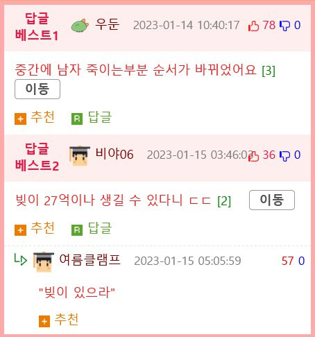 천사가 자결을 부추기는 만화 수민이에여 0 974 0 06.14 18:00 link URL 복사: https://humorpick.com/bbs/board.php?bo_table=toon&wr_id=4715 호텔방에 칼이...? 0