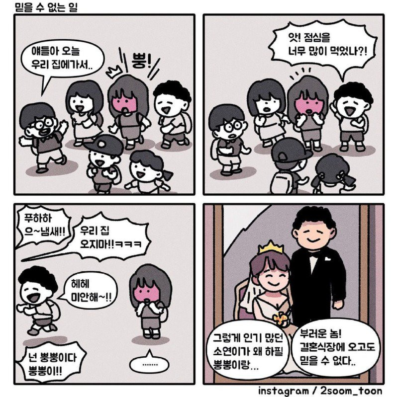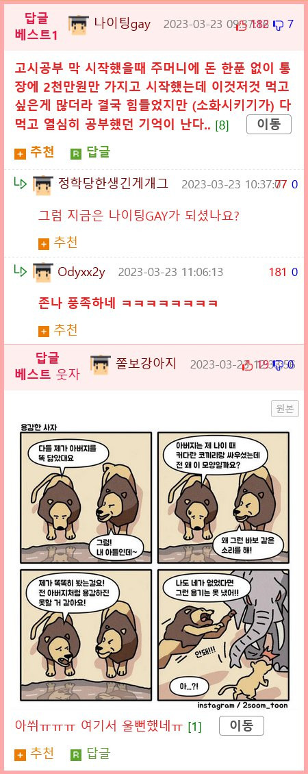 네 컷 만화 모음 (투숨툰) 우라칸 0 1229 0 06.18 03:00 link URL 복사: https://humorpick.com/bbs/board.php?bo_table=toon&wr_id=4742 오늘도 좋은 하루가 되길 앞부분은 예전에도 많이 올라오던 건데 못보던 부분이 생겨서 퍼왔습니다 0