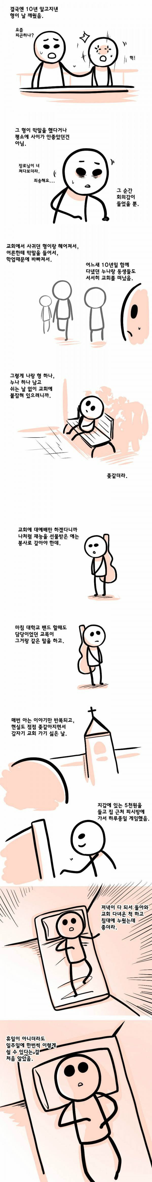 교회를 다니지 않게 된 만화 오크대장 0 1289 0 06.19 09:00 link URL 복사: https://humorpick.com/bbs/board.php?bo_table=toon&wr_id=4752 0