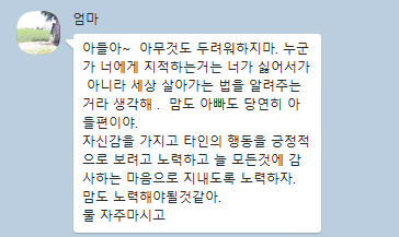 다들 우리 엄마 카톡 보고 힘들 내세요 공백이 3 1666 1 2023.12.07 11:14 link URL 복사: https://www.humorpick.com/bbs/board.php?bo_table=free&wr_id=1630 오늘 아침에 우리 엄마가 카톡 줬는데 메시지가 감동이라서 공유하고 싶었어요 보고 다들 오늘 하루도 힘냈으면 좋겠습니다 1