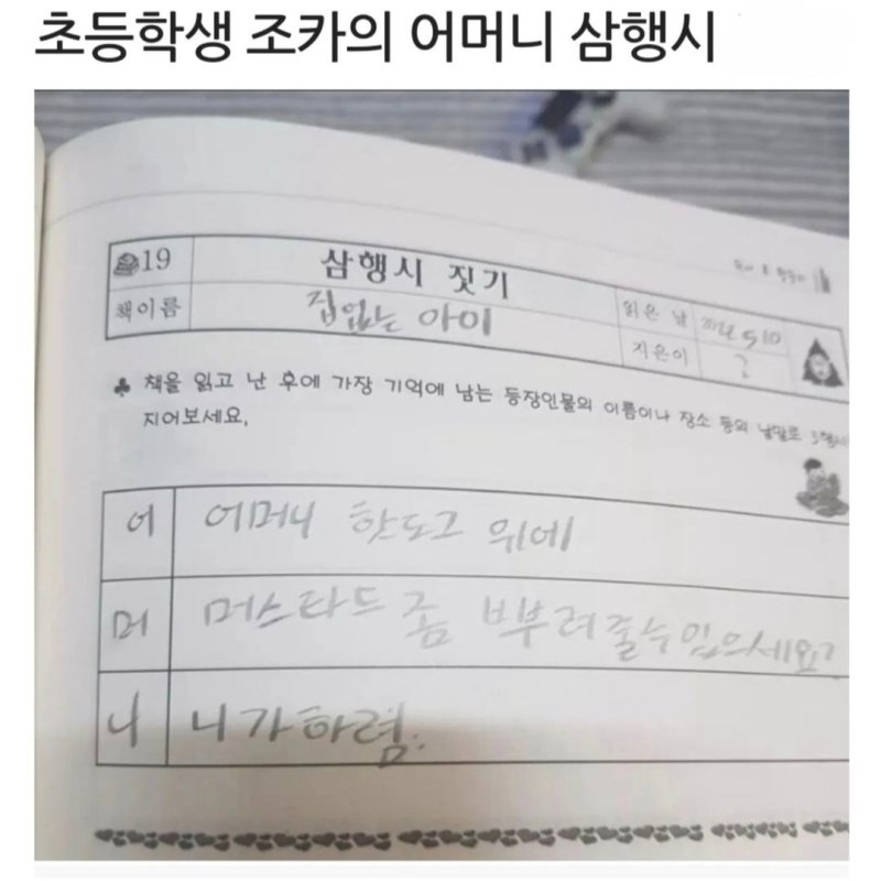 어머니 삼행시 레전드 썰 무지개맛개구리 0 7358 0 2022.06.02 18:46 link URL 복사: https://www.humorpick.com/bbs/board.php?bo_table=humor&wr_id=16396 어머니 머스타드 좀 뿌려주세요 니가 하렴. 0