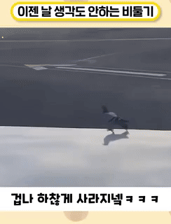 비행기 날개 위에서 버티다 하찮게 사라지는 비둘기