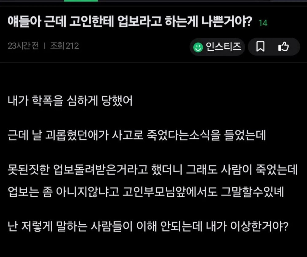 고인한테 업보라고 하는 게 나쁜 거야? 몽둥이 0 236 0 4시간전 link URL 복사: https://www.humorpick.com/bbs/board.php?bo_table=humor&wr_id=397428 0
