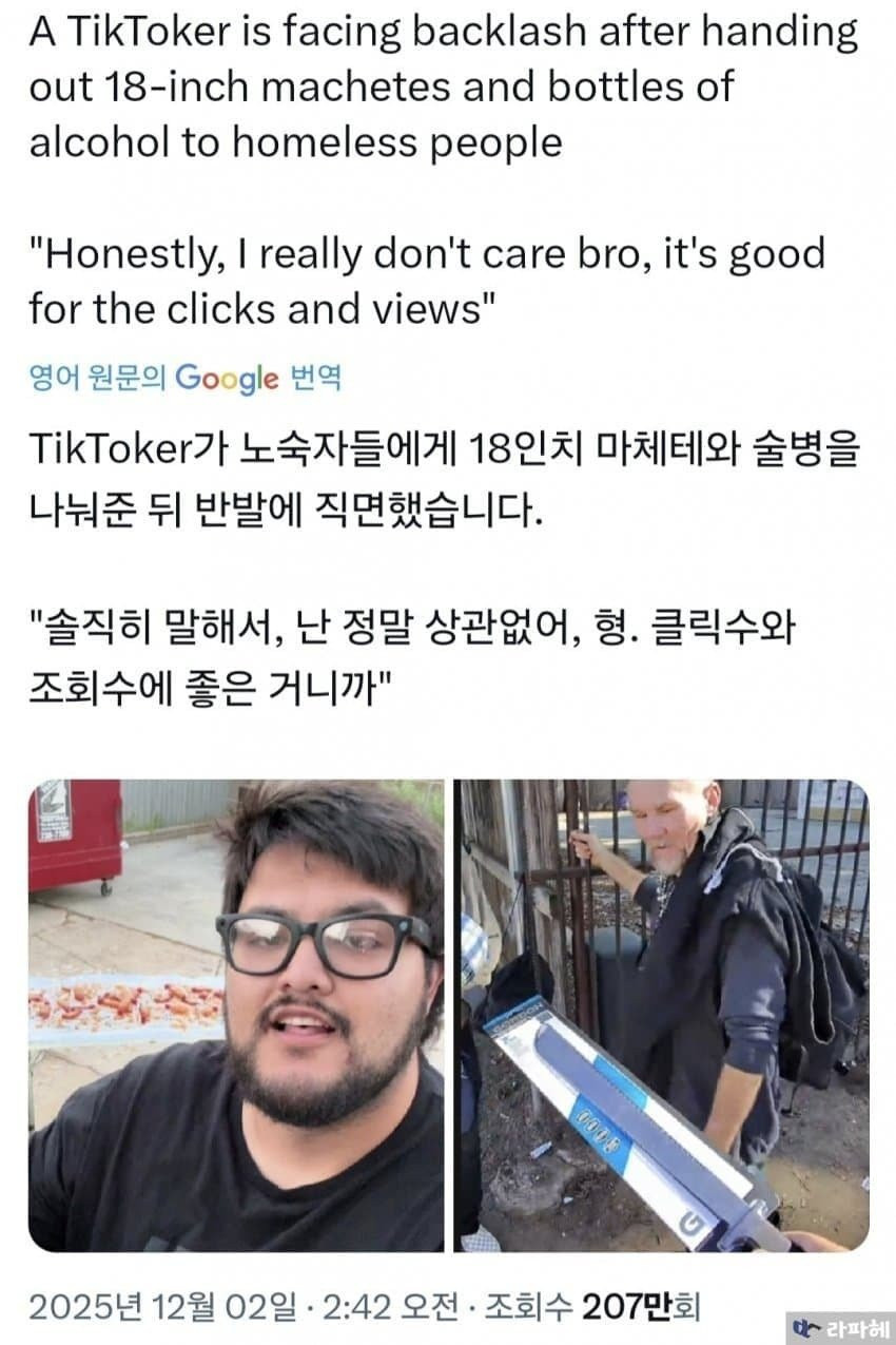 어느 틱톡커가 노숙자들에게 공짜로 나눠준 물건 ㄷㄷ 아기물티슈 0 310 0 2시간전 link URL 복사: https://www.humorpick.com/bbs/board.php?bo_table=humor&wr_id=397487 0