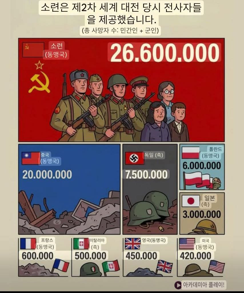 2차 세계대전 주요 참전국들의 사상자 수 버디버디 0 284 0 2시간전 link URL 복사: https://www.humorpick.com/bbs/board.php?bo_table=humor&wr_id=398068 그러하다 0