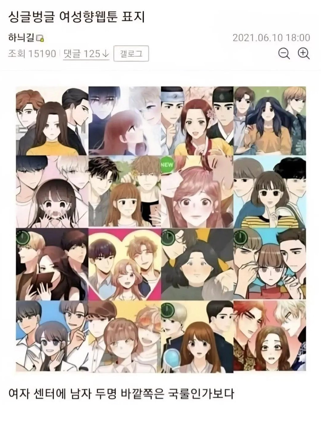여성향 웹툰 썸네일 국룰 픽시베이 0 255 0 01.28 23:51 link URL 복사: https://www.humorpick.com/bbs/board.php?bo_table=humor&wr_id=400909 0