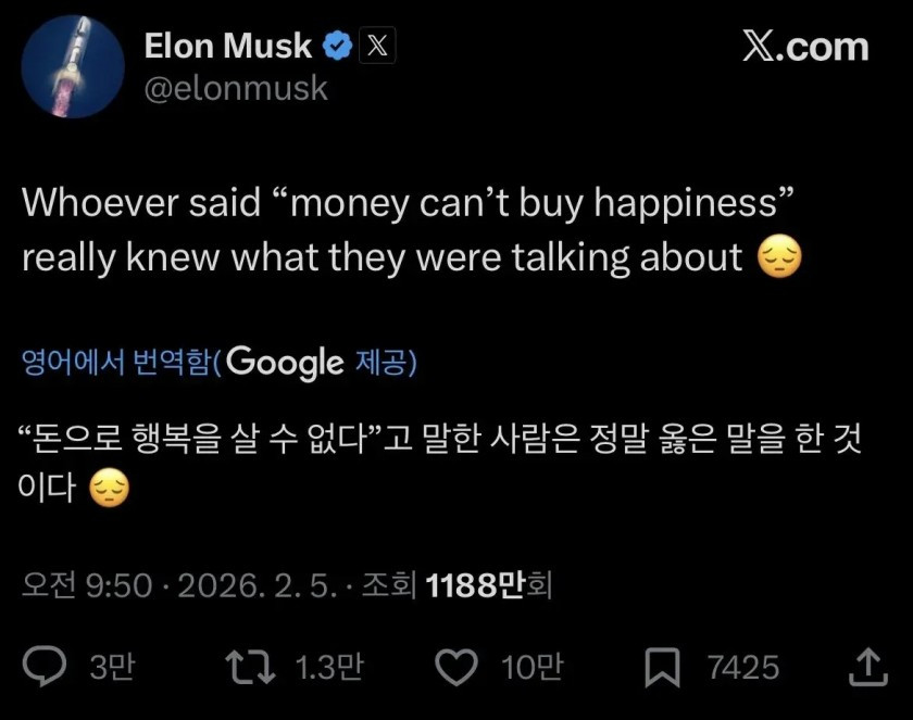 일론 머스크, 돈으로 행복을 살 수 없다는 말은 정말 옳은 말 버디버디 0 171 0 2시간전 link URL 복사: https://www.humorpick.com/bbs/board.php?bo_table=humor&wr_id=401726 ㄷㄷ 0