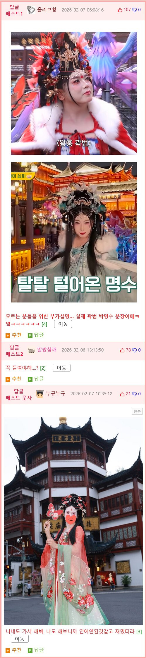 둘 중 어느 후궁을 들이시겠습니까? 몽둥이 0 300 0 2시간전 link URL 복사: https://www.humorpick.com/bbs/board.php?bo_table=humor&wr_id=402022 이 문장이 보이면 video 태그를 지원 하지 않는 브라우저 입니다.이 문장이 보이면 video 태그를 지원 하지 않는 브라우저 입니다. 0