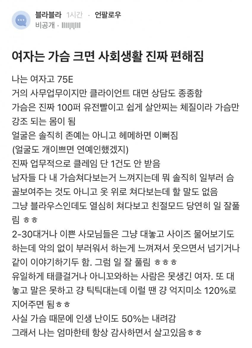 여자는 가슴 크면 사회생활 진짜 편해진다는 75E컵녀 아기물티슈 0 333 0 2시간전 link URL 복사: https://www.humorpick.com/bbs/board.php?bo_table=humor&wr_id=402201 외모도 경쟁력이고 능력이긴 하죠 0