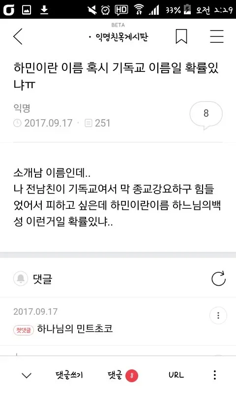 하민이란 이름 혹시 기독교 이름일 확률있냐ㅠ
