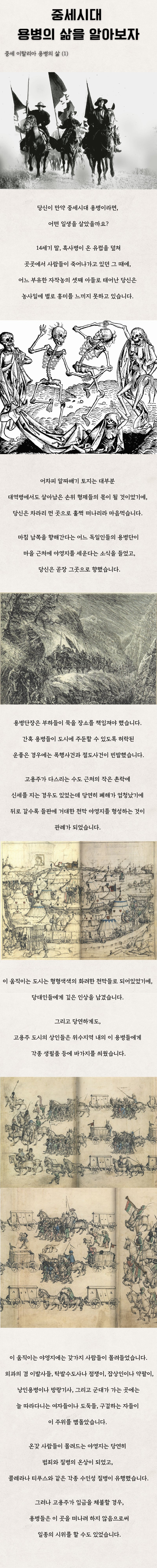 중세시대 용병의 삶을 알아보자 큐플레이 0 136 0 2시간전 link URL 복사: https://www.humorpick.com/bbs/board.php?bo_table=humor&wr_id=402777 예전에 썼던 중세 용병단 글을 퇴고해보고 있습니다. 0