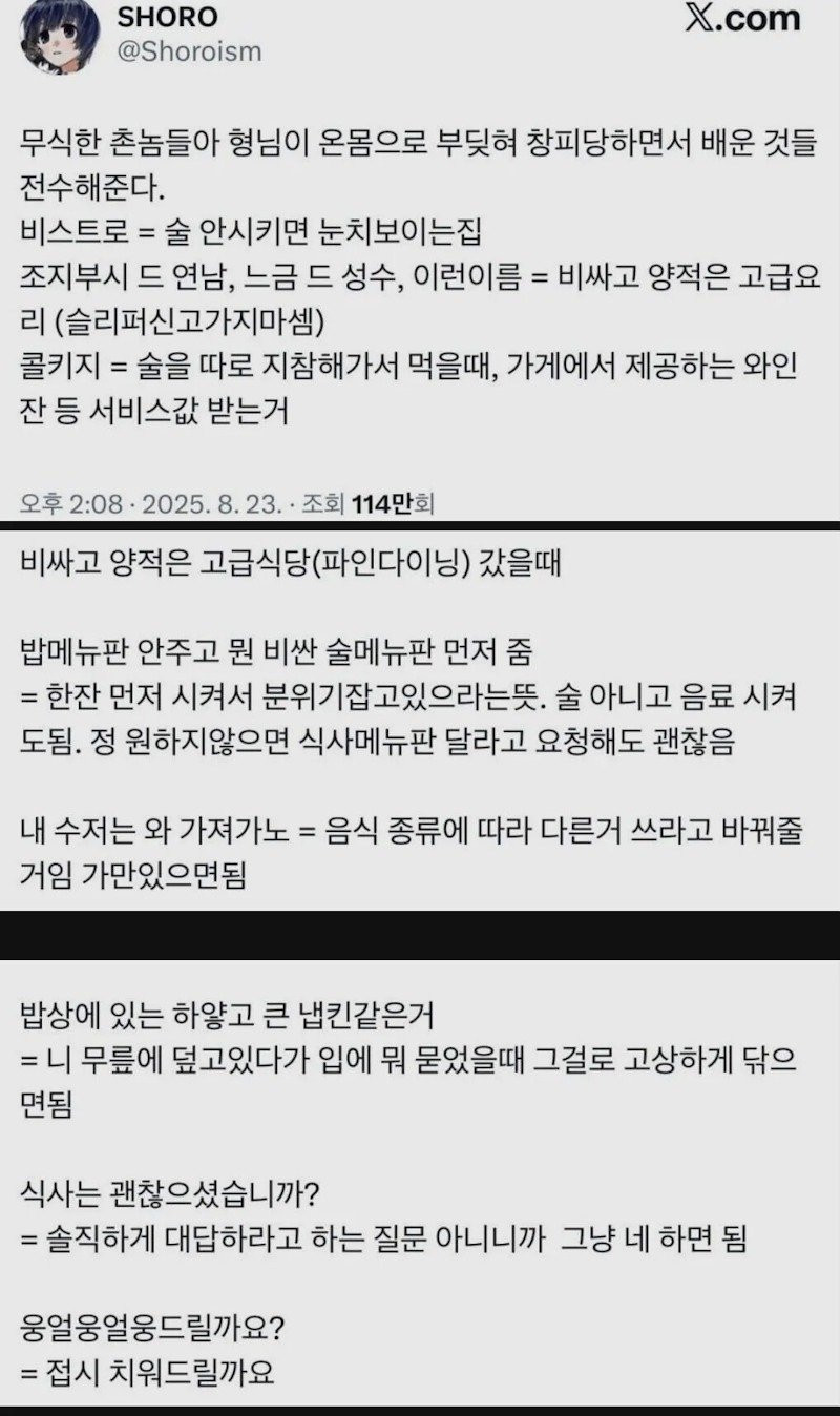 무식한 촌놈들아 형님이 고급 식당 매너 알려준다.jpg 슬라임 0 288 0 2시간전 link URL 복사: https://www.humorpick.com/bbs/board.php?bo_table=humor&wr_id=403098 0