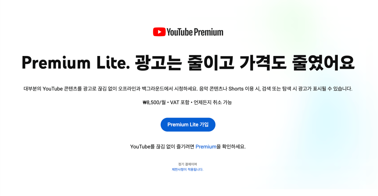 유튜브 프리미엄 라이트 출시