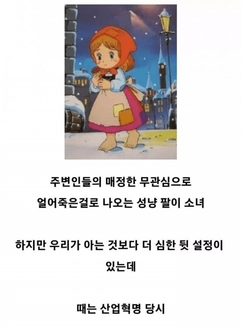 성냥팔이 소녀가 나올 수밖에 없었던 가혹한 시대배경 아기물티슈 0 178 0 3시간전 link URL 복사: https://www.humorpick.com/bbs/board.php?bo_table=sagun&wr_id=1134 0