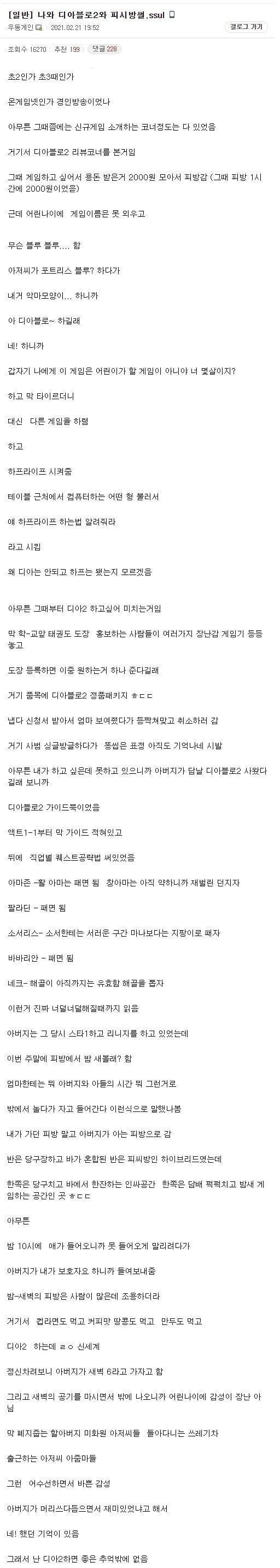 아버지랑 pc방 밤샌 썰 아기물티슈 0 271 0 3시간전 link URL 복사: https://www.humorpick.com/bbs/board.php?bo_table=ssul&wr_id=1434 0
