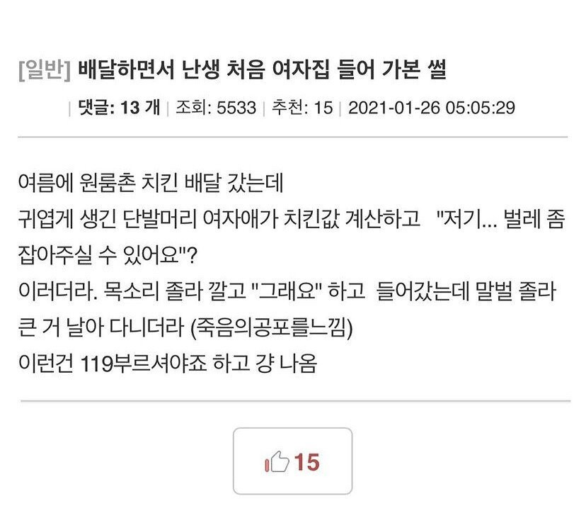 배달하면서 난생 처음 여자집 들어가 본 썰.jpg 버디버디 0 229 0 2시간전 link URL 복사: https://www.humorpick.com/bbs/board.php?bo_table=ssul&wr_id=1442 0
