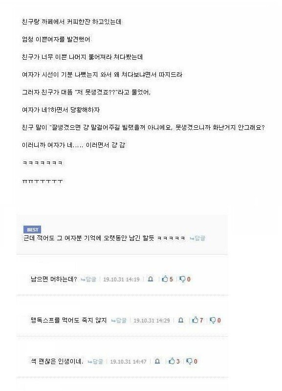 얼굴 쳐다봤더니 여자가 따진 썰 버디버디 0 343 0 4시간전 link URL 복사: https://www.humorpick.com/bbs/board.php?bo_table=ssul&wr_id=1444 0