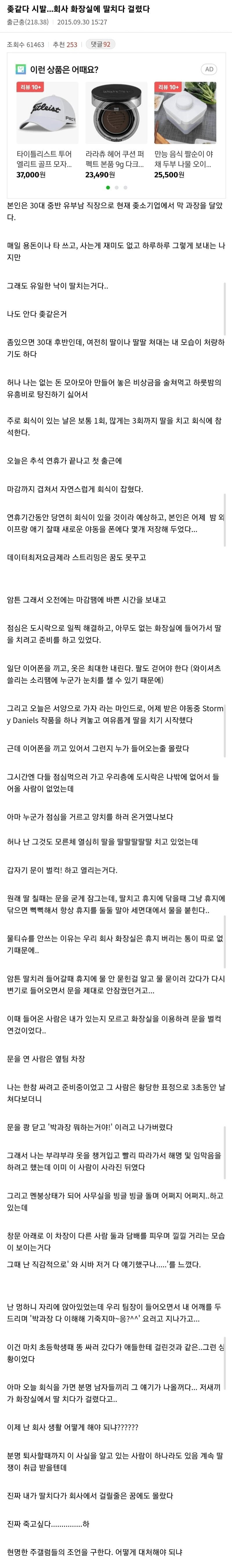 회사 화장실에서 딴짓하다 걸린 썰 아기물티슈 0 196 0 3시간전 link URL 복사: https://www.humorpick.com/bbs/board.php?bo_table=ssul&wr_id=1616 0