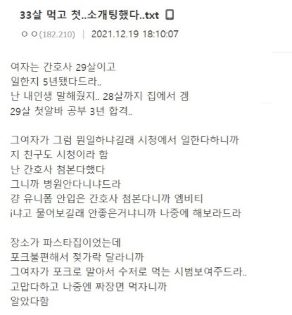 숨이 턱턱 막히는 소개팅 썰.jpg 버디버디 0 328 0 2시간전 link URL 복사: https://www.humorpick.com/bbs/board.php?bo_table=ssul&wr_id=1634 0