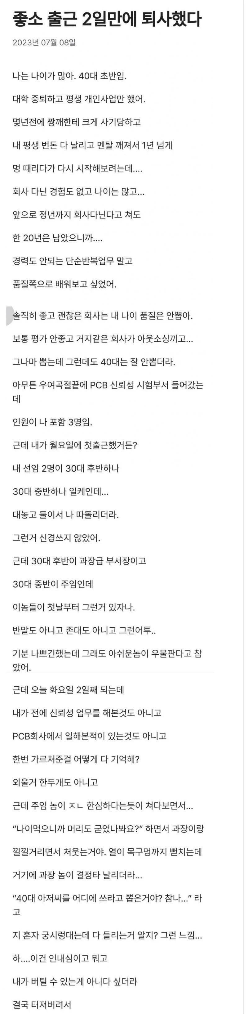 입사 2일만에 퇴사 한 썰 ㅎㄷㄷ 아기물티슈 0 314 0 3시간전 link URL 복사: https://www.humorpick.com/bbs/board.php?bo_table=ssul&wr_id=2095 0